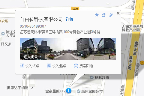 步行至 恒隆广场办公楼1座17楼1703室 无锡自由位科技有限公司